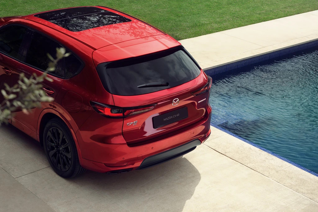 სწორედ ამ მიზანს ემსახურება CX-60-ის დიზაინი, რომელსაც უჩვეულოდ გრძელი წინა ნაწილი, ვიწრო მაშუქები, უკანა საბურავებთან ახლოს მყოფი საყრდენი ღერძი, ვიზუალური სიგანე და დგომა გამოარჩევს, რომელიც ზედმეტი ხმაურის გარეშე ახერხებს ავტომობილის სპორტული დნმ-ის გადმოცემას.